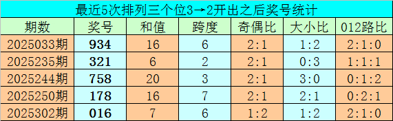 开奖细致:第2025349期胪列三开出奖号032,奖号组选类型为组六,012路比为2:0:1,大小比为0:3,奇偶比为1:2。