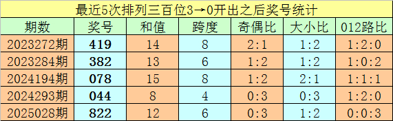 1、胪列三最近两期百位号码永诀开出3和0,历史上百位号码承接两期永诀开出3和0的奖号出现了68期。前五期开出之后其下期奖号永诀为:419、382、078、044、822;